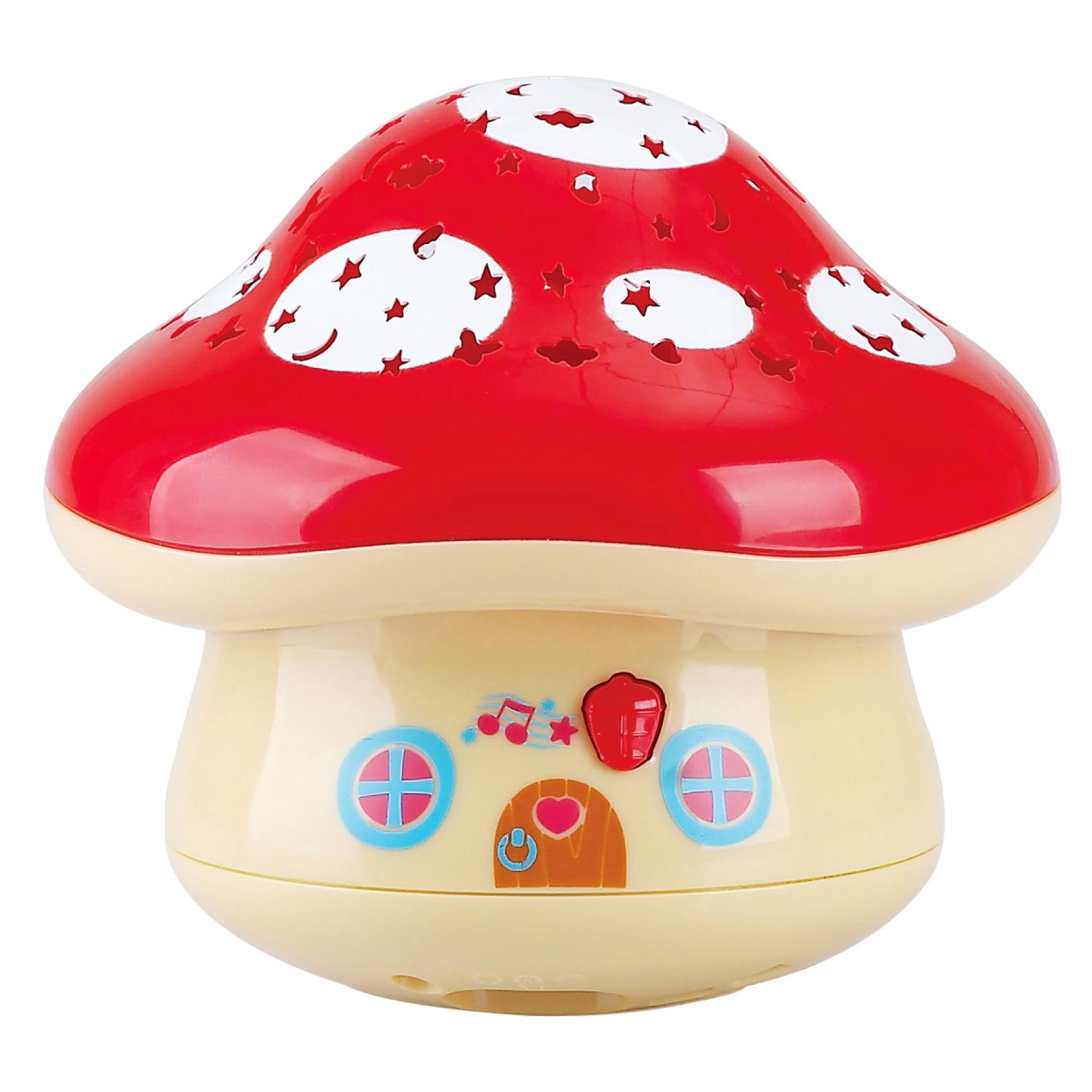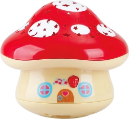 Denne blide natlampe i svampeform skaber et magisk lysshow på dit børneværelse. Den projicerer farvede stjerner og andre former på vægge og loft og hjælper børn med at falde til ro før sengetid. Beroligende melodier ledsager behageligt projektionen og støtter en regelmæssig søvnrytme.