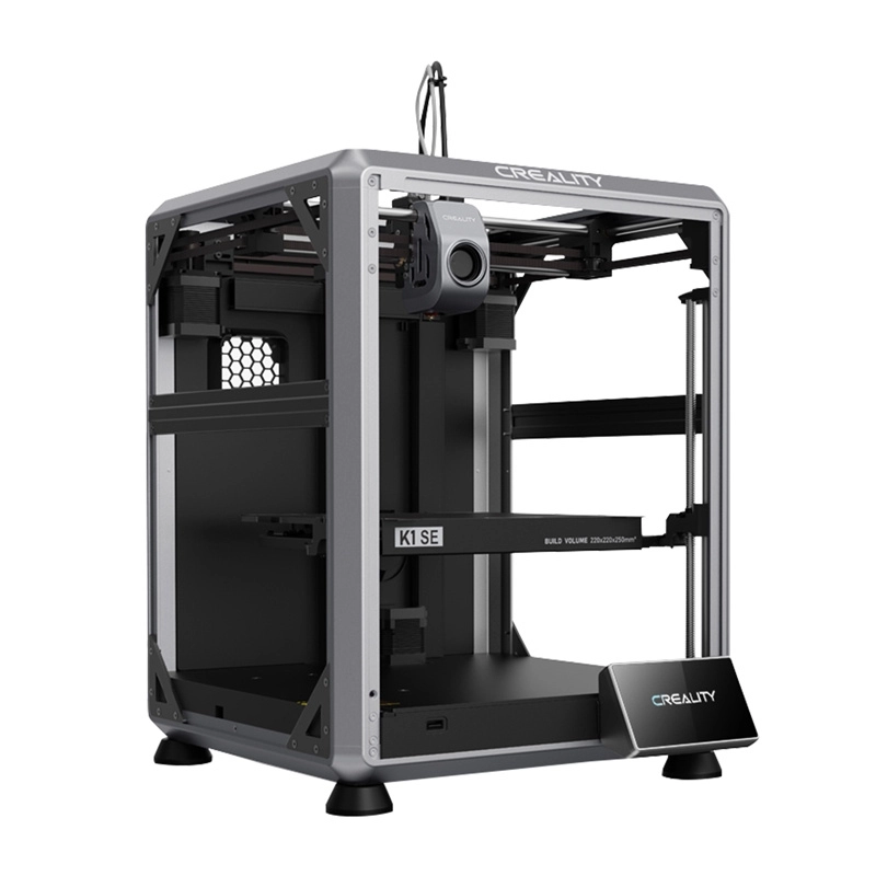 Creality K1 SE er en kraftfuld og ekstraordinært hurtig 3D-printer med hastighed op til 600 mm/s og acceleration på 20.000 mm/s². Takket være dobbelt ekstruder, automatisk nivellering og fabriks-kalibrering printer den præcist uden unødige forsinkelser. Den robuste metalkonstruktion, lette printhoved og G-sensor sikrer stabil og nøjagtig udskrivning. Understøttelse af Wi‑Fi, print fra USB-flash, kompatibilitet med STL/OBJ/3MF og software Creality Print 5.0, Cura, PrusaSlicer gør arbejdet nemt selv for avancerede brugere.