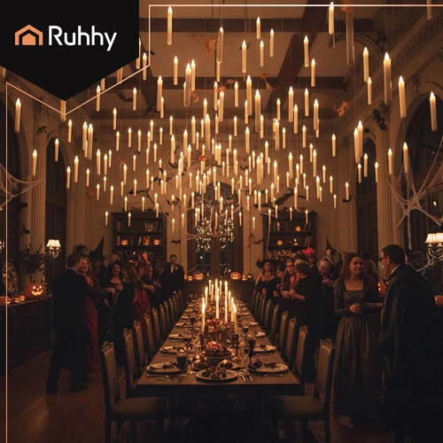 Perfekt til Halloween-udsmykninger, temafester, festborde og romantiske øjeblikke. I pakken finder du alt, du behøver: 12 LED-lys, 30 m line, selvklæbende kroge og en manual – på få minutter tryller du en imponerende svævende dekoration frem.