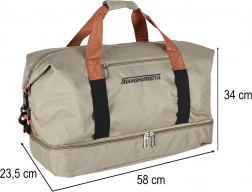 Denne alsidige rejsestaske er designet til weekendture og længere rejser. Takket være den gennemtænkte rumopdeling kan du nemt adskille sko eller kosmetik i det nederste rum med lynlås fra tøjet i hovedrummet. Solidt forbundne håndtag og en justerbar rem sikrer komfortabel bæring i hånden eller over skulderen.