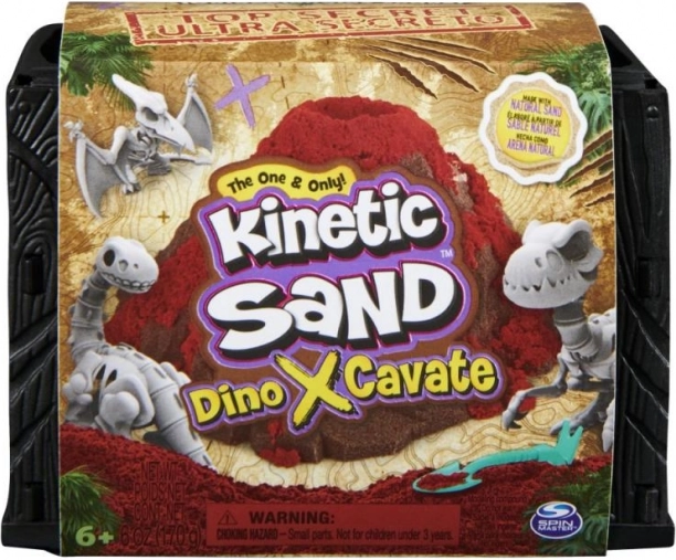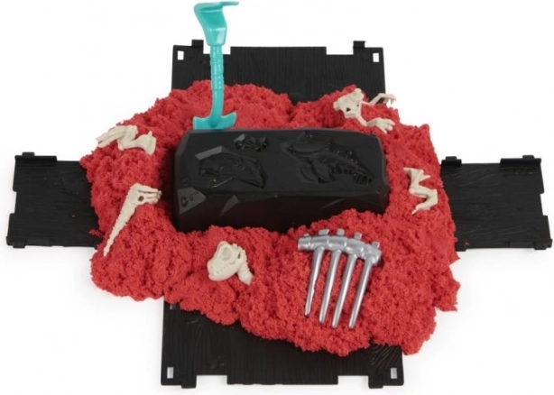 Bliv en lille paleontolog, og afslør skjulte dinosaurfossiler i den særlige Kinetic Sand-boks. Takket være sandets unikke egenskaber klumper kornene sig naturligt sammen, smuldrer ikke og bevarer samtidig fantastisk formbarhed til modellering og byggeri.