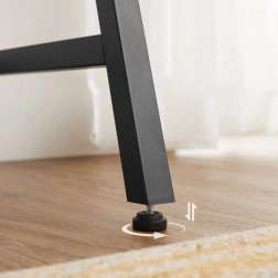 Den store bordplade rummer computer, skærm, højtalere, laptop og printer og har stadig plads til bøger og hæfter. Justerbare fødder udligner ujævnheder i gulvet, så bordet står fast og sikkert.
