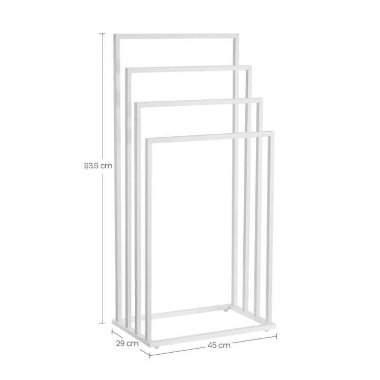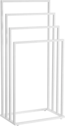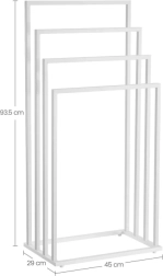 Det fritstående håndklædetørrestativ tilbyder fire niveauer til overskuelig ophængning og effektiv luftcirkulation. Det minimalistiske design i mat hvid passer nemt til enhver badeværelsesstil og bidrager med orden og elegance.