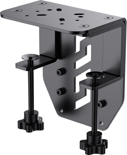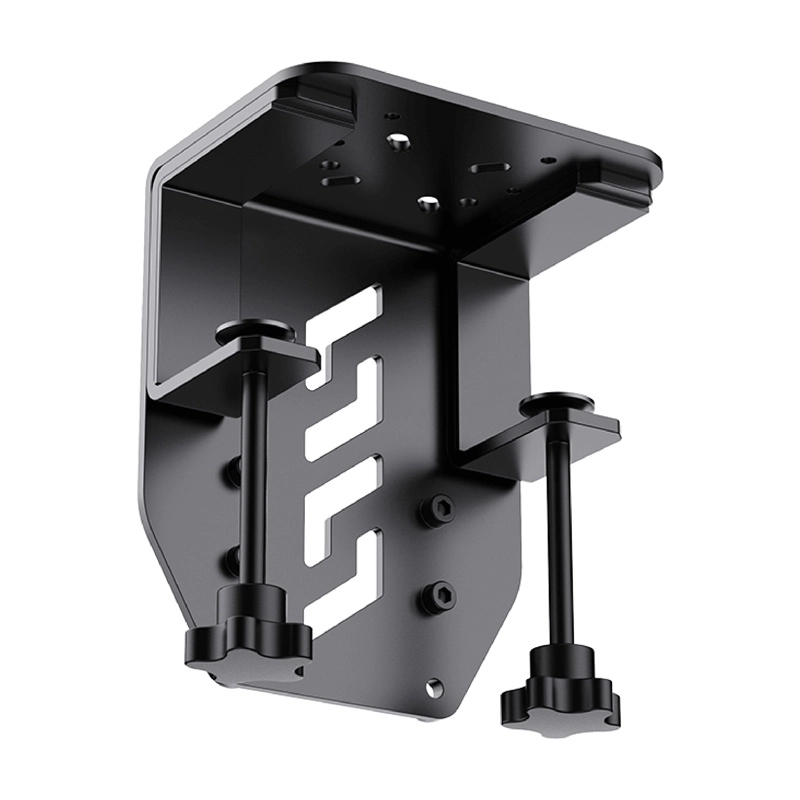 Den universelle fastgørelse muliggør installation på bordets overkant eller på et beslag efter afmontering af C-formet plade. Det kompakte design sparer plads og understøtter en ergonomisk opsætning af både hjemme- og professionelle simrigs.