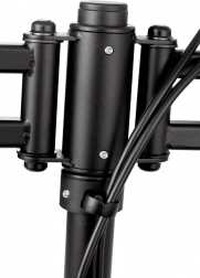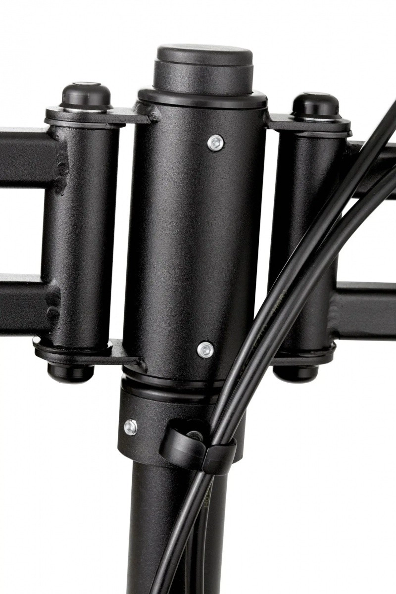 Det dobbelte beslag til to skærme gør det muligt at indstille den ideelle position for både arbejde og underholdning. Takket være de flerleddede arme justerer du let højde, tilt, drejning og afstand mellem skærmene, hvilket understøtter korrekt ergonomi og reducerer træthed i øjne og nakke.