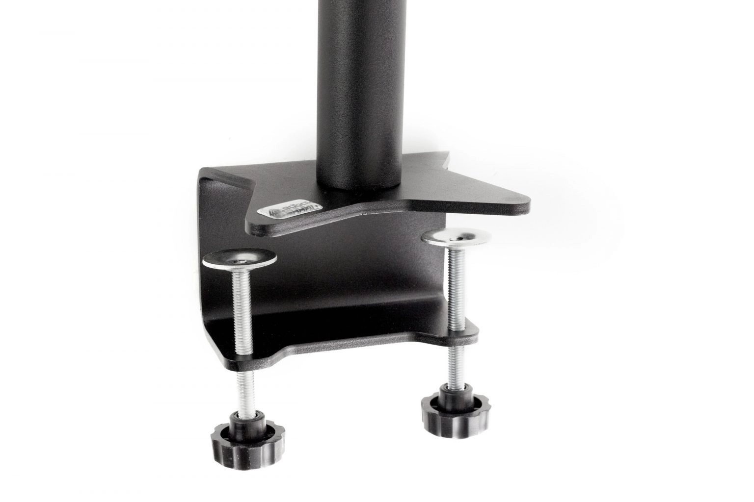 Universel bordholder til to skærme på 19–27″ med VESA 75×75 og 100×100 tilbyder fuld højderegulering, 360° rotation af armene og nem installation. I pakken finder du 2 typer fastgørelse til bordpladen for maksimal fleksibilitet og stabilitet. Ideel til ergonomiske arbejdspladser på kontor, i industri, transport og i overvågningscentre.