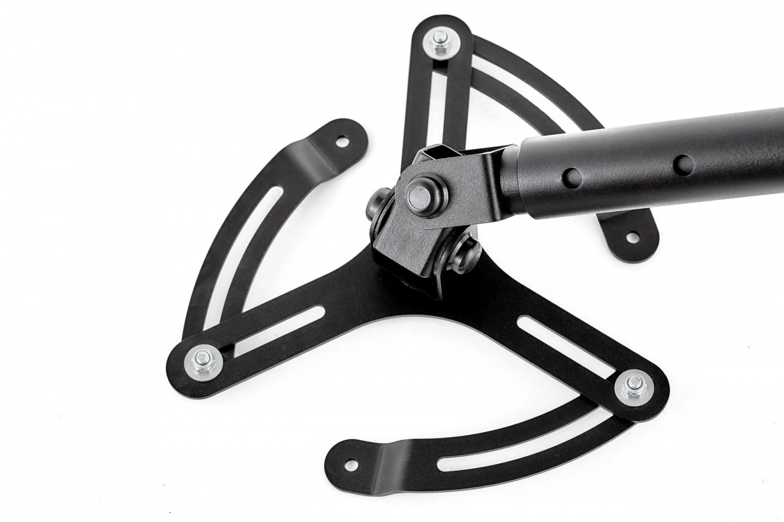 Justerbare monteringsarme med aflange huller dækker forskellige skrueafstande på projektorer og sikrer stabil fastgørelse uden slør.