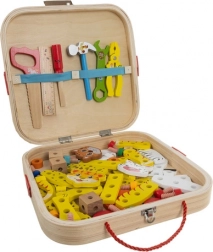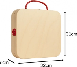 Alle dele er omhyggeligt slebet og malet med ugiftige farver. Takket være krydsfinerskufferten med metal-lukning og rebhåndtag er alt pænt organiseret og klar til at tage med. Sættet er en ideel gave til både drenge og piger og er i overensstemmelse med europæiske standarder.