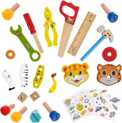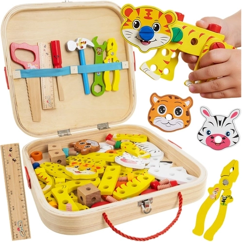 Dette rige sæt kombinerer leg og læring. Med sav, hammer, skruetrækker og tang kan børn skrue, forbinde og samle farvede dele til glade dyr og køretøjer. Det understøtter koordination, præcision og rumlig forståelse og introducerer samtidig grundlæggende konstruktion.