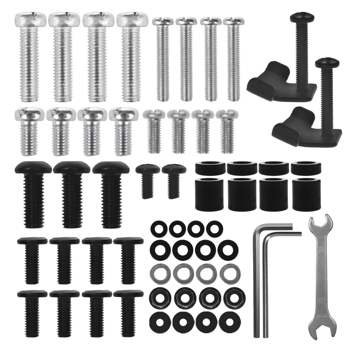 Omfatter et bredt udvalg af skruer, afstandsskiver, unbrakonøgler og værktøj – så du kan montere hurtigt uden at skulle anskaffe ekstra dele.
