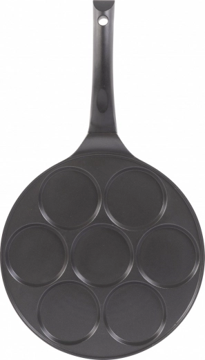 Oplev bekvemmeligheden ved at tilberede perfekte pandekager, racuchy eller kartoffelpandekager. Denne pande i højkvalitets aluminium tilbyder 7 runde forme til ensartede portioner og et sikkert resultat på enhver kogeplade. Den PFOA-fri nonstick-belægning minimerer behovet for fedt og gør servering og rengøring lettere.