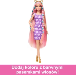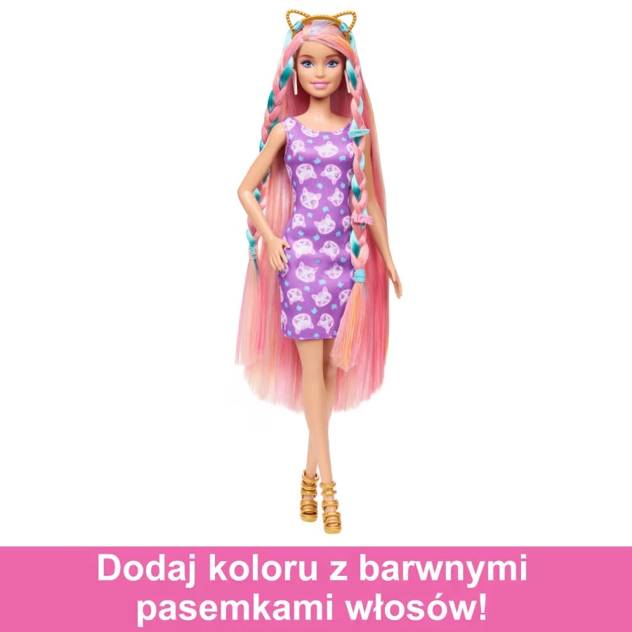 Oplev en verden af stil med dukken BARBIE Leg med hår. Takket være det meget lange blonde hår med farvede striber og et rigt sæt af tilbehør kan børn lave frisurer fra søde knolde til fantasifulde fletninger. Stylingen fuldendes nemt med en glitrende minikjole, udskiftelige højhælede sko og en håndtaske.