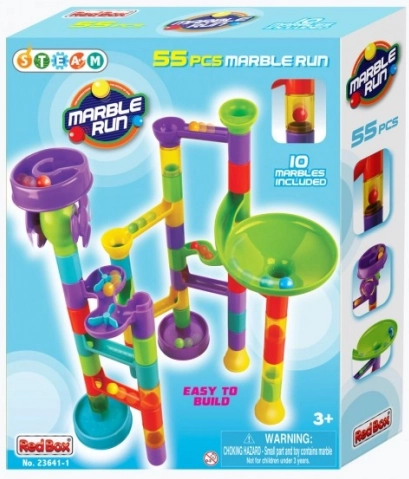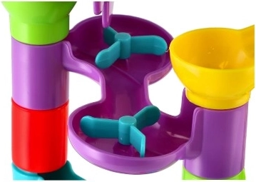 Denne plastiske kuglebane med 55 dele lader børn bygge varierede baner og afprøve, hvilken kugle der er hurtigst. Takket være forskellige forhindringer og roterende elementer er hver tur anderledes og fuld af spænding. Sættet understøtter kreativitet, tålmodighed og hånd–øje-koordination.