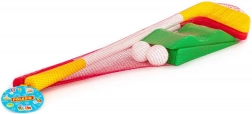 Sættet indeholder plastkøller med rød og gul køllehoved, som er lette og nemme at håndtere.