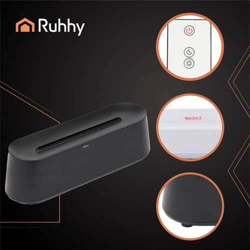 Oplev den beroligende kombination af duft, fin tåge og visuelt show med RUHHY-enheden, som forener en aroma-diffuser og en luftfugter. Den realistiske LED-flammeeffekt, stille drift og automatisk slukning ved mangel på vand skaber et sikkert og behageligt miljø til afslapning derhjemme, i soveværelset, på kontoret og i SPA. Kapacitet 250 ml, timer 2/4/6 t og fjernbetjening for maksimal komfort.