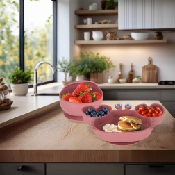 Krabbetallerkenen med tre rum holder portionerne adskilt og står fast takket være sugekoppen. Ideel til de første smagsprøver og mere varierede måltider.