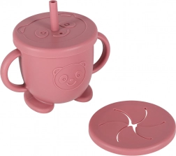 Alsidig kop med to låg og sugerør fungerer både som drypfri snackboks og som kop med sugerør. Ergonomiske håndtag for let greb.