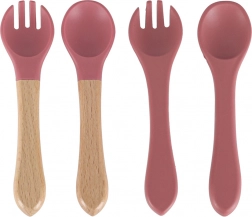 Koppen med to låg kan bruges som kop med sugerør eller som snack-/træningskop. Medfølgende træningsbestik (nogle med trædetaljer) er tilpasset små hænder, og hagesmækken med dyb lomme opfanger madrester. Sættet tåler opvaskemaskine og udvalgte dele kan bruges i mikroovn, hvilket sparer tid i hverdagen.