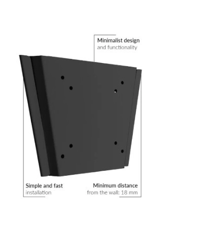 Beslaget GD22 er det ideelle valg til sikker og æstetisk montering af mindre tv og monitorer. Dets slanke profil med en afstand på blot 18 mm fra væggen skaber et rent interiørudtryk og sparer plads. Den enkle konstruktion sikrer problemfri installation selv under begrænsede forhold.