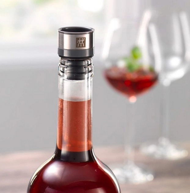 Takket være kvalitets-rustfrit stål og en robust elastisk tætning sidder propperne sikkert i flasken, og du kan trygt vaske dem i opvaskemaskinen. De er perfekte ikke kun til vin, men også til olier og juicer – de bevarer smag, duft og næringsværdi. Kun ikke egnet til kuldioxiderede drikke. Brug ZWILLINGs gratis app til at holde styr på friskheden.