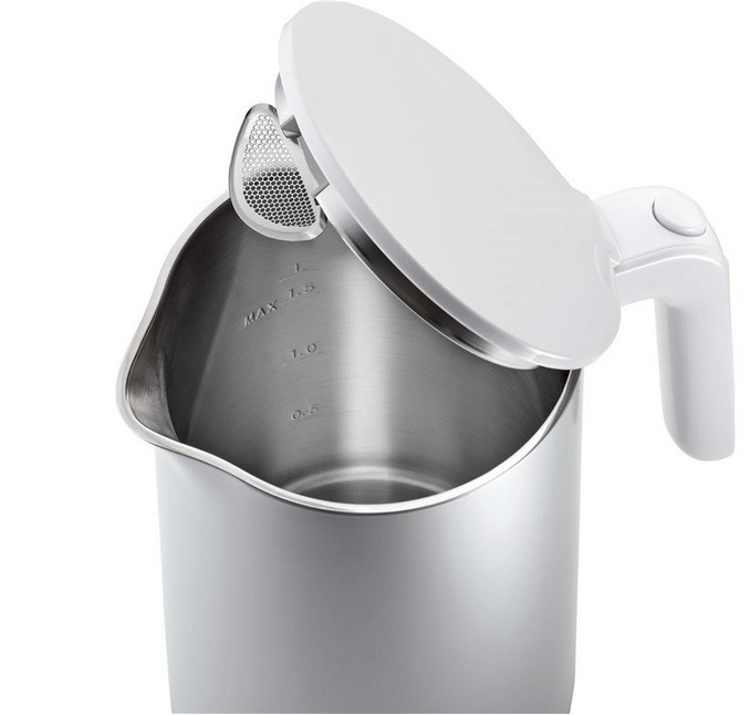 Den sømløse beholder i rustfrit stål med indvendige markeringer op til 1,5 l og et fint rustfrit stålfilter i tuden sikrer ren påfyldning og bedre vandsmag.