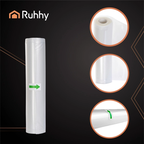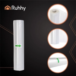 Den rillede vakuumfolie RUHHY er en pålidelig løsning til langtidsopbevaring af fødevarer uden tab af smag og aroma. Den gennemsigtige side fremhæver elegant udseendet på kød, fisk, oste og grøntsager, mens den strukturerede side sikrer effektiv udsugning af luft og en kvalitetsforsegling. Det universelle ærme lader dig skære præcis den længde, du har brug for – uden unødigt spild af materiale.