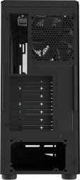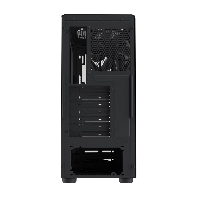 Kabinettet understøtter op til 6 blæsere samt radiatorer til vandkøling (foran op til 280 mm, i toppen 240 mm med RAM‑højde op til 35 mm, bagpå 120 mm). Fra fabrikken er der monteret 1× MasterFan Lite bagpå, som hjælper med at holde optimale temperaturer selv ved mere krævende konfigurationer. Takket være det rummelige interiør kan du nemt montere lange grafikkort og højere CPU‑kølere.