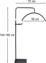 Tung base, højde 140–180 cm og integreret telefonholder for komfortabel optagelse og dokumentation af arbejdet i salonen.