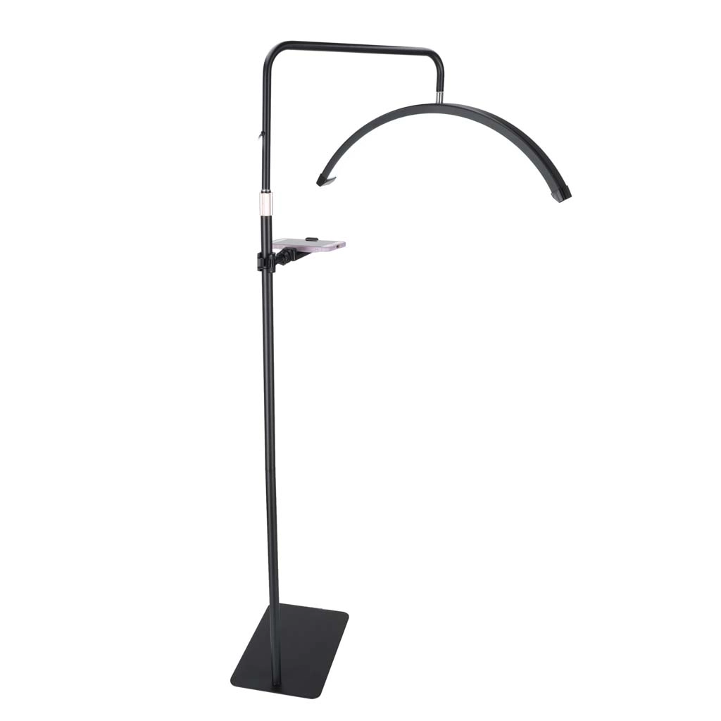 Professionel LED-buet lampe til kosmetik med effekt på 36 W giver jævn, skyggefri belysning til lash & brow-styling, manicure, make-up og fotografering. Den tilbyder bredt farvetemperatur-område 3000–5600 K, 10 lysstyrkeniveauer og høj farvegengivelse RA>90 for naturtro detaljer. Stabilt metalstativ med justerbar højde og telefonholder gør arbejdet lettere og hjælper med indhold til sociale medier.