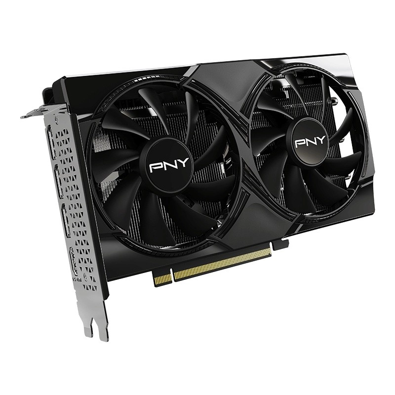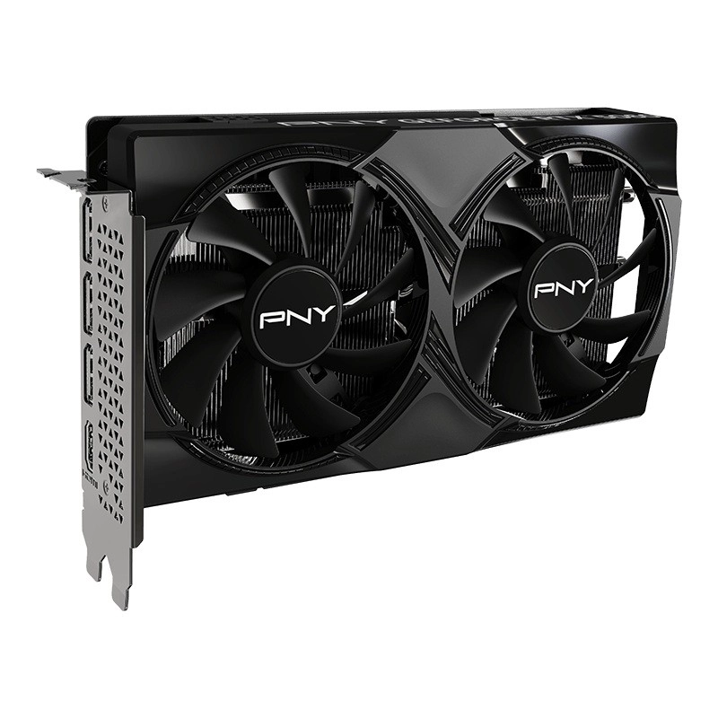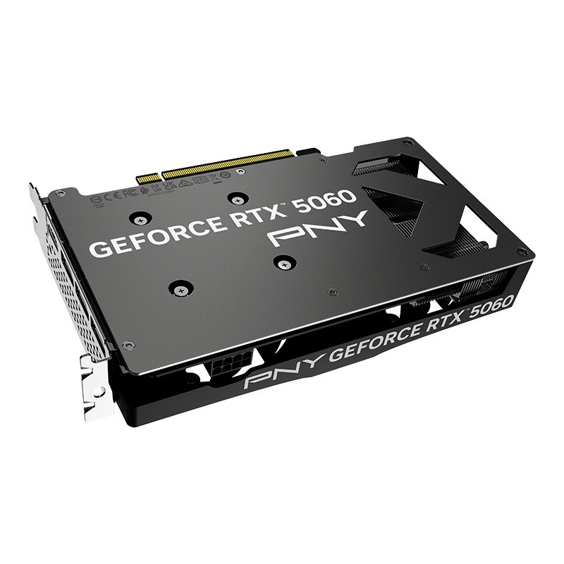 PNY GeForce RTX 5060 8GB leverer et fremragende forhold mellem ydelse og effektivitet i et kompakt to-slots design. To store aksiale blæsere og en massiv aluminiums-køler med heatpipes holder temperatur og støj i skak, mens en metal-backplate øger stivheden og forbedrer varmeafledningen. Et ideelt valg til gaming med høj FPS, streaming og acceleration af kreative applikationer.