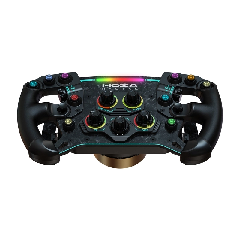 For maksimal kontrol får du 8 RGB-knapper, 2 programmerbare bagknapper, 3 dreje-encodere, 2 hjul, en 7-vejs omskifter samt en joystick. Ti LED-omdrejningsindikatorer med 16,7 mio. farver kan konfigureres i MOZA Pit House, ligesom hele skærmens UI. En aluminiums quick-release sikrer lynhurtigt ratbytte, og både trådløs og kablet forbindelse garanterer fuld kompatibilitet med MOZA-baser samt via universaladapter også tredjeparts-support.