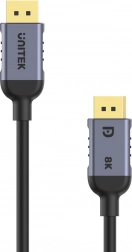 Højkvalitets DisplayPort 1.4-kabel fra UNITEK leverer førsteklasses billedoverførsel op til 8K ved 60 Hz eller 4K ved 240 Hz med support for HDR, DSC 1.2 og HDCP 2.3. Med en båndbredde på 32,4 Gb/s og forgyldte stik sikrer det stabilt, flydende billede og rumlig lyd – ideelt til spil, grafik, video og VR.