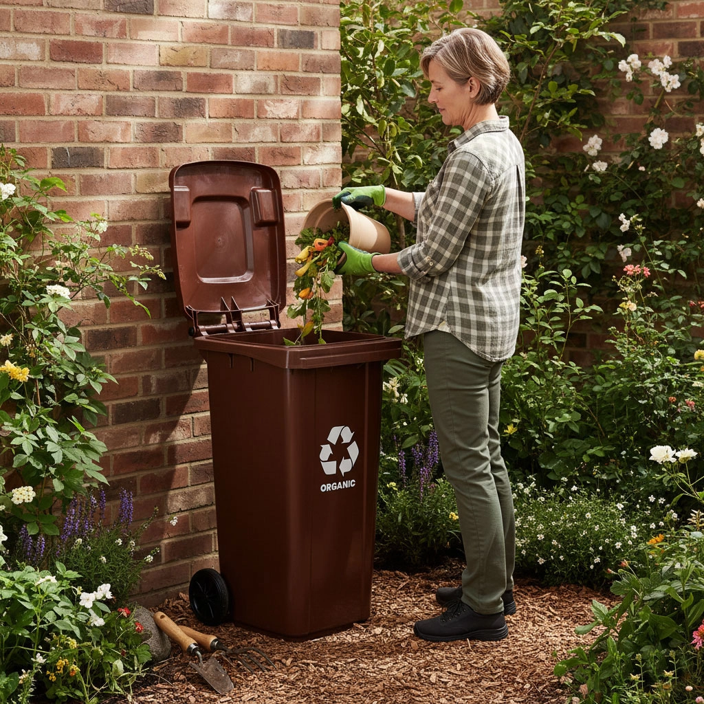 Denne 120-liters bioaffaldsspand er fremstillet af kvalitets-HDPE, som er UV-stabilt og modstandsdygtigt over for kemikalier og stød. Det tætsluttende låg beskytter mod vand og lugt, hvilket gør spanden egnet til udendørs brug hele året. Konstruktionen opfylder EN-840 og er kompatibel med kommunale renovationsbiler.