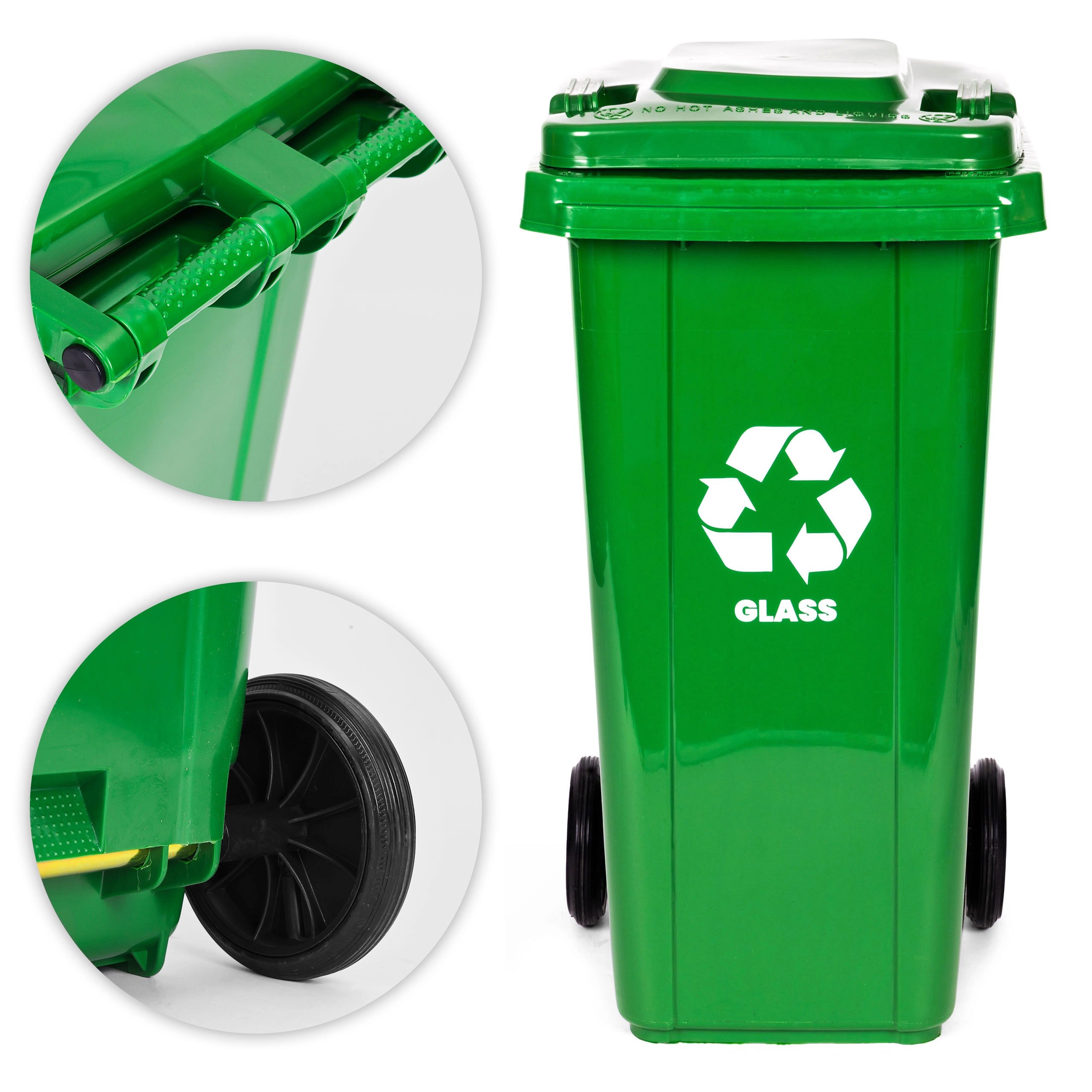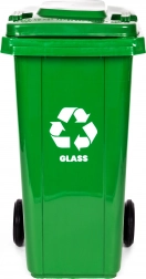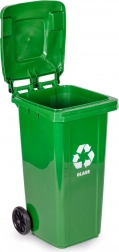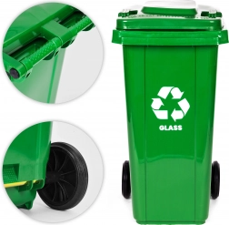 Praktisk og robust container til sortering af glas med en kapacitet på 120 l af HDPE, modstandsdygtig over for UV, kemikalier og mekaniske skader. Gummihjul og ergonomisk håndtag sikrer nem håndtering, mens det tætsluttende låg beskytter mod regn og lugt. Skridsikre fødder øger stabiliteten på glatte overflader. Velegnet til både husholdninger og virksomheder, kompatibel med kommunal indsamling i henhold til EN 840 og certificeret ISO9001, ISO14001, ISO45001.