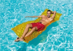 Den oppustelige madras med bølgedesign er ideel til afslapning ved poolen og på ferien ved vandet. Den brede liggeflade sikrer komfort, den integrerede pude støtter nakke og hoved, og den kvalitetsstærke vinyl tåler sommerens fornøjelser. Konstruktionen med to kamre giver højere sikkerhed og stabilitet på vandoverfladen.