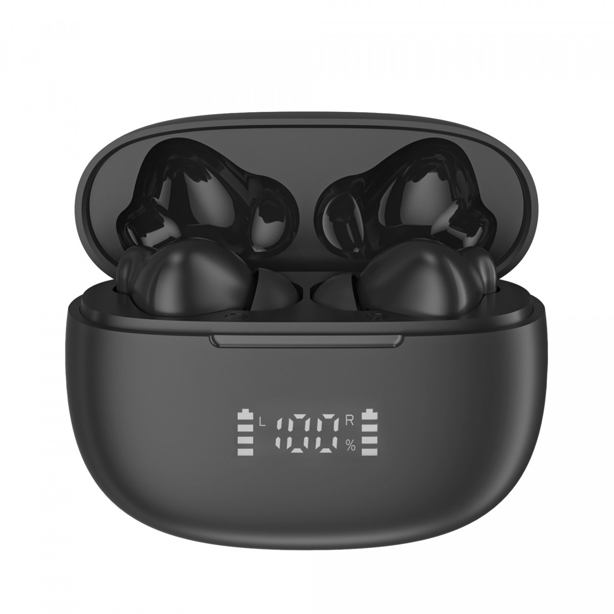 Det digitale display på etuiet viser procent og niveau for både venstre og højre øreprop, så du præcist ved, hvornår der skal oplades.