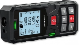 Enheden understøtter et bredt udvalg af funktioner: enkeltmåling, kontinuerlig måling med min/max, beregning af areal og volumen samt Pythagoras-tilstande (1/2/3) til indirekte bestemmelse af højder og afstande, når direkte måling ikke er mulig. Automatisk sluk efter 180 s sparer energi, og den robuste ABS-konstruktion beskytter enheden ved daglig brug.