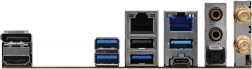 USB 3.2 Gen2x2 Type‑C foran og bagpå, Intel 2.5G + 1G LAN, Wi‑Fi 6E og Bluetooth 5.3 samt HDMI, DisplayPort og eDP til integreret grafik.