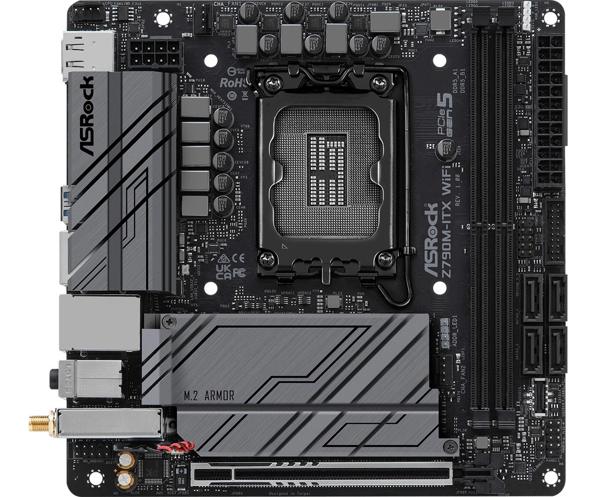 ASROCK Z790M‑ITX WiFi er det ideelle valg til kraftfulde, men pladsbesparende PC’er. Den byder på 7+1+1 fase‑strømforsyning med Dr.MOS for stabil drift af Intel Core CPU’er op til 14. generation, to DDR5‑pladser med støtte for høje frekvenser og en fuld PCIe 5.0 x16 slot til de nyeste grafikkort.