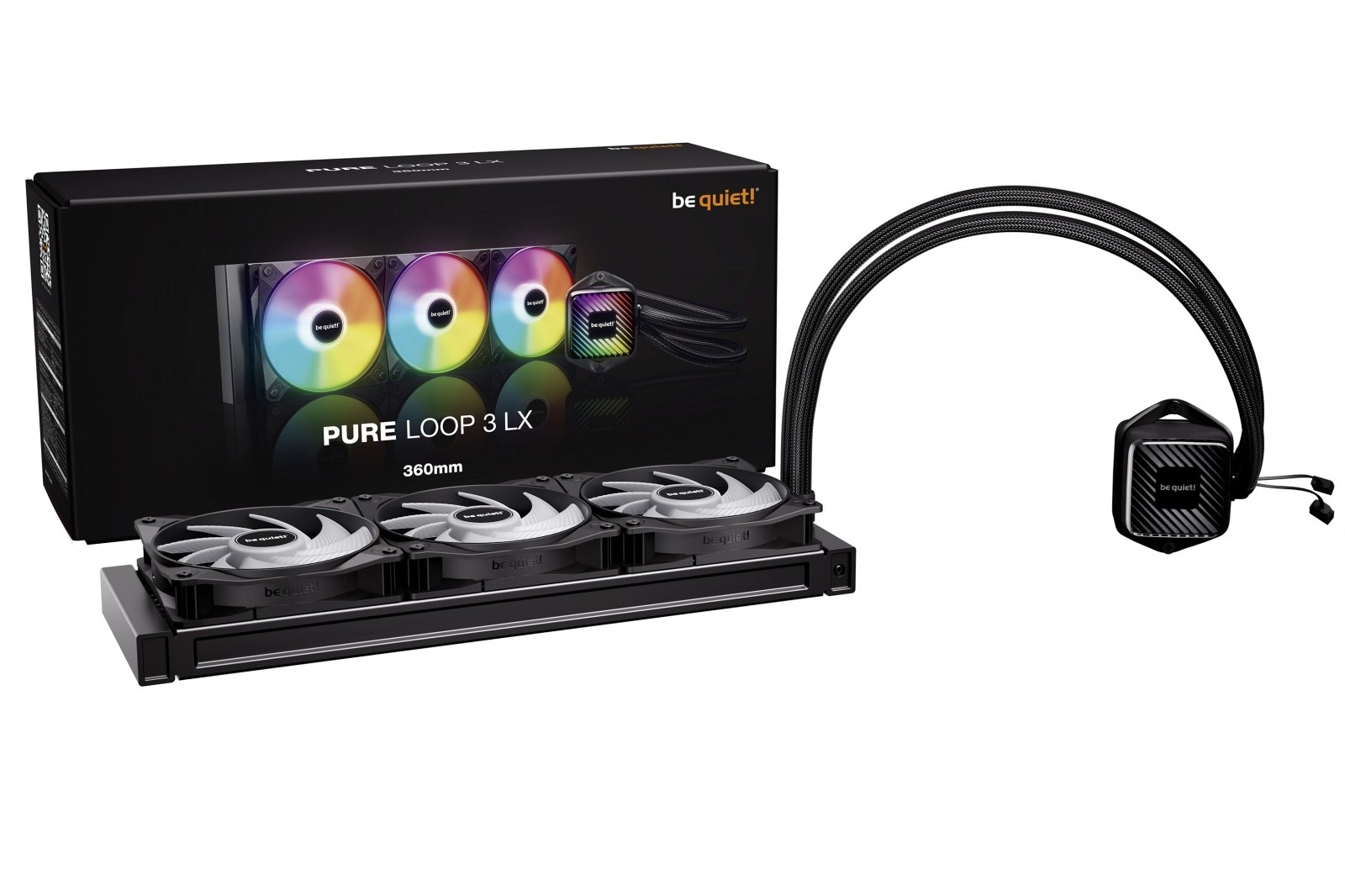 Pure Loop 3 LX 360 mm kombinerer gennemtænkt design med maksimal køling. Den stilfulde ARGB-blok med 10 medfølgende folier giver brede muligheder for at personalisere udseendet. Tre Light Wings LX 120 mm PWM high-speed blæsere med 16 LED og flowoptimerede blade leverer høj ydelse og lav støj, mens tragtformede udgange maksimerer luftstrømmen gennem den tætte 360 mm ribberadiator.
