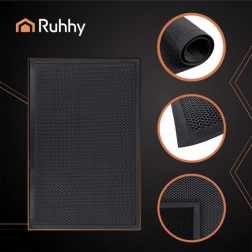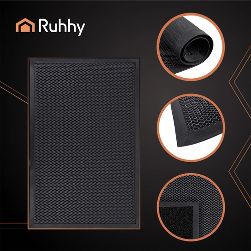 RUHHY-måtten er en pålidelig løsning til indgange i hus, lejlighed, kontor og butik. Dens hårde og holdbare konstruktion med 3D-gitter skraber effektivt mudder, sand og vand af fodtøj, så indendørsområder forbliver rene længere. Hævede kanter hjælper med at holde snavs og fugt på måtten og forhindrer, at hjørnerne bøjer.