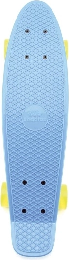 Gule hjul dæmper ujævnheder for behagelig cruising. Den blå plade giver din kørsel et friskt look.