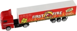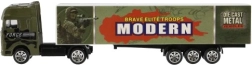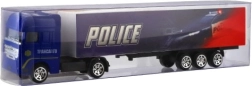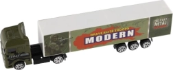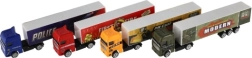 Oplev en detaljeret lastbil med sættevogn, som ikke må mangle i nogen samling af legebiler. Metalførerhuset giver modellen et realistisk udseende og højere holdbarhed, mens plasttilbehør holder vægten lav for let håndtering. Takket være friløbsmekanismen skal der blot et let skub til, og lastbilen kører glidende.