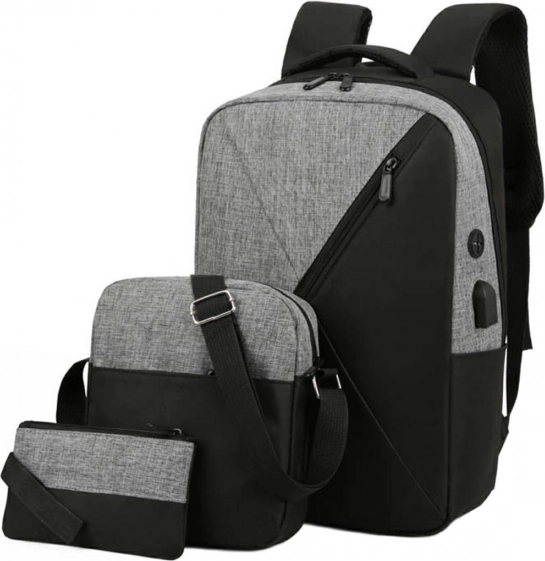 Denne moderne og funktionelle pakke inkluderer en rygsæk med rummeligt hovedrum og yderligere lommer til nem opbevaring af alle nødvendige genstande. Rygsækken har også en åbning til hovedtelefonforbindelse, hvilket gør det nemt at lytte til musik på farten. Stærke lynlåse sikrer dine ting. Universal design gør det muligt at bruge den i forskellige situationer, både daglige og officielle.