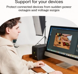 Forbedret læsbarhed på displayet og mulighed for styring via en dedikeret app gør brug og overvågning enklere. RJ45-overspændingsbeskyttelse beskytter desuden netværkselementer som router eller NAS mod spændingsspidser.