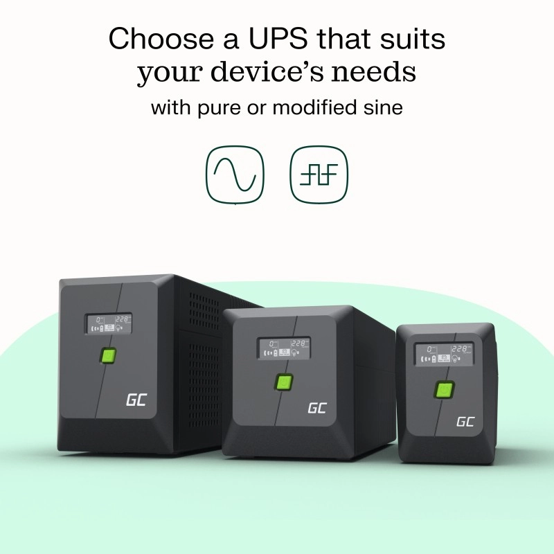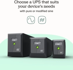 Pålidelig nødstrømforsyning UPS 1000 VA / 700 W fra Green Cell med ren sinus, overskueligt LCD-display og overspændingsbeskyttelse (RJ45) beskytter din elektronik mod strømafbrydelser, datatab og spændingssvingninger. Hurtig omskiftning (under 10 ms, online 0 ms) sikrer uafbrudt drift af tilsluttede enheder.