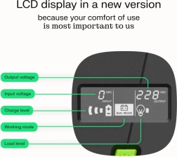 - LCD-display – klare oplysninger om belastning, batteri og netstatus.