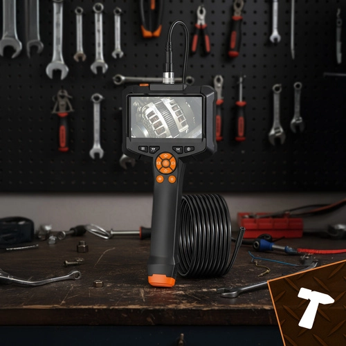 Takket være trådløs drift med 2000 mAh batteri (op til 3,5 timers arbejde) og opladning via USB‑C er enheden klar når som helst og hvor som helst. IP67-klassificeringen beskytter sonden ved arbejde under krævende forhold. I pakken finder du også tre praktiske tilbehørsdele – magnet og krog til at trække metal- eller små genstande op og et spejl til visning under forskellige vinkler.