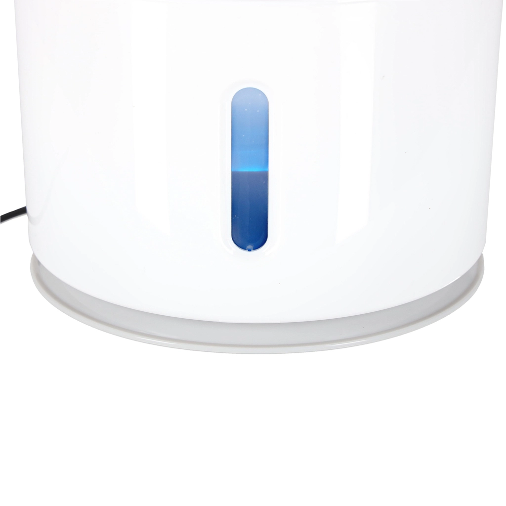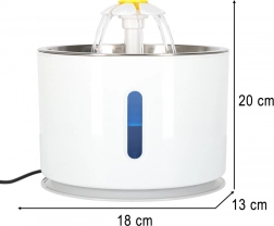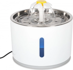 Giv dit kæledyr konstant adgang til frisk vand. Denne stille fontæne på 2,4 l af plastik og rustfrit stål holder vandet i bevægelse, hvilket øger dets tiltrækningskraft og friskhed. Takket være indsynet og LED-belysning af vandstanden har du overblik over vandniveauet, udskifteligt filter med aktivt kul opfanger urenheder og hår, og USB-strømforsyning 5 V gør det nemt at placere den hvor som helst i hjemmet.