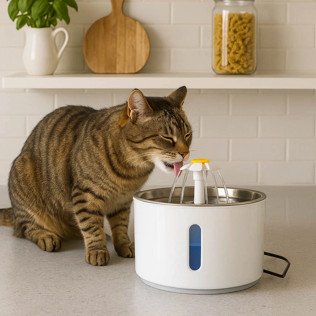 Den flerstrengede blomsterudløb skaber blide strømme, som naturligt motiverer katte og hunde til oftere at drikke og holder vandet friskt.